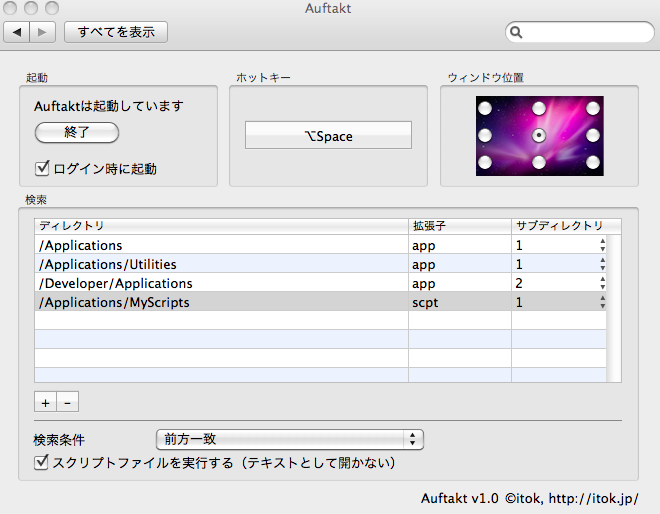 - システム環境設定→Auftaktでスクリプトを置いたフォルダを検索パスに追加、拡張子はscptにしとく