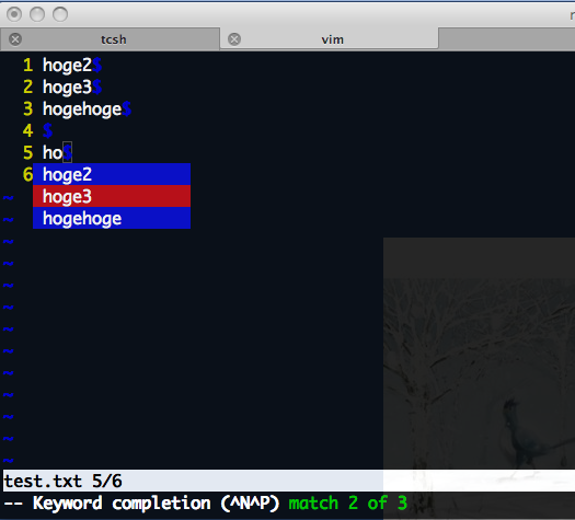 オートコンプリートを便利にできるプラグイン上の画像はvimrcで文字色なんかを変えてある