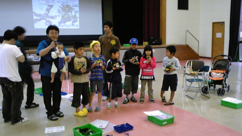 ちなみに小学校も高学年になると、見本をみつつ足回りを改造したりします。たとえばキャタピラにしてみたり蜘蛛のように歩くものにしてみたり、同じ大砲でもタイヤと連動してピコピコ動いたり、今回は居なかったので参考画像はなし、、、