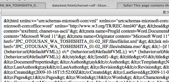 解凍そのものはできてるが、特殊文字としてエスケープされてるので表示できてない。。。しかたないので表示されたのをテキストエディタにコピペして、特殊文字をもとにもどす