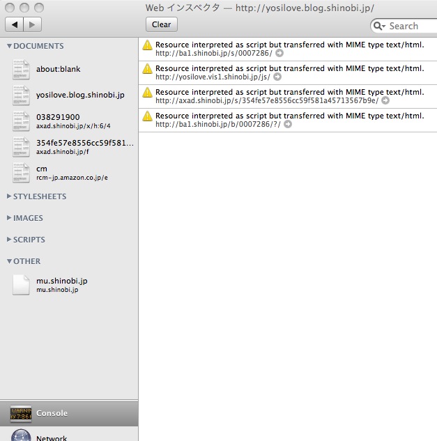 このWebインスペクタ、出してみればわかるが結構イイ、ページ内で使われてる画像(もち動画も)HTML、スタイルシートからスクリプトまですべてのソースが見れます。