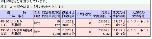 明日は日本駐車場開発の決算発表なのだが、配当は前日に購入した人でももらえるのかな?って言うテスト、2株買ったので昨年と同じ配当200円なら400円貰える計算、まぁただの試しだから100円でも貰えりゃおけ