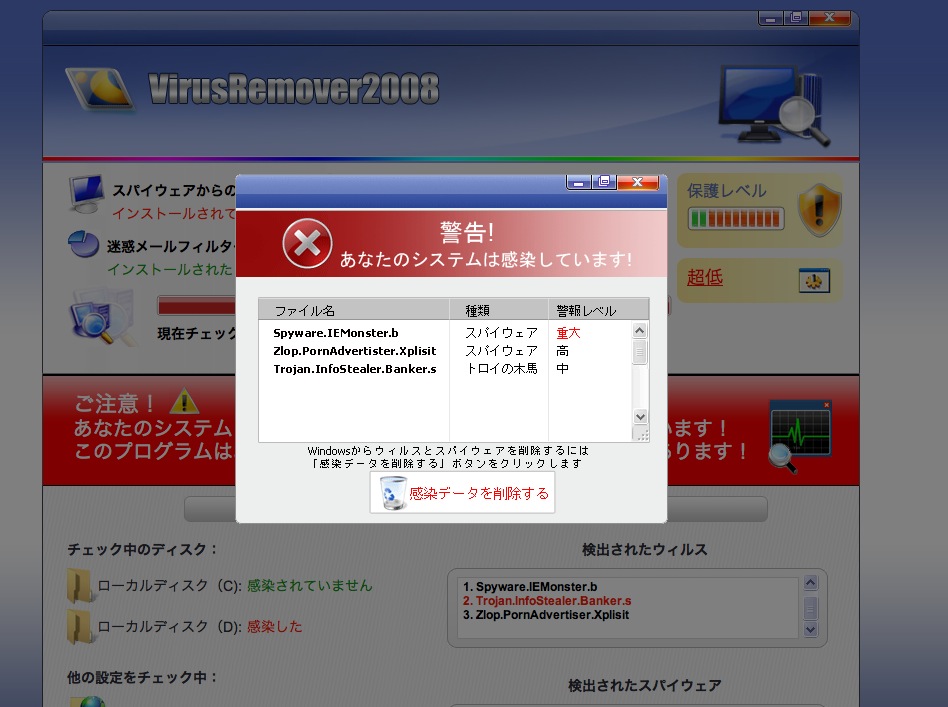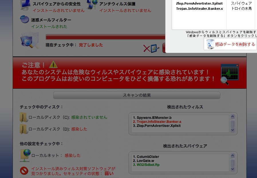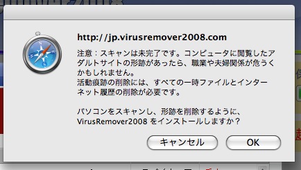 ちょw ダイアログがブラウザのウィンドウから外に出ないww そしてWindowsのソフトでその速度はあり得ないww てゆうかまずもって俺のパソコンはMacなんですがwww どうみてもウィルスです(笑)