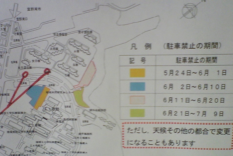 てゆうかさ、みんな知ってる? 来週から工学部の駐車場が工事で一部使えなくなるんだって!